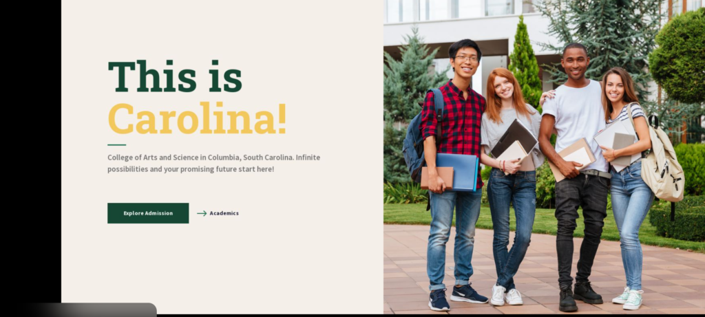 Purpose: Creates a strong first impression and tells users what your college stands for.